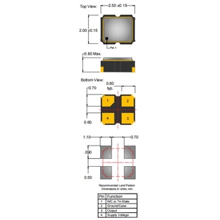 安德森晶振|AE809-N-T-2-4085-3R3-32M768000|2520mm振蕩器尺寸圖