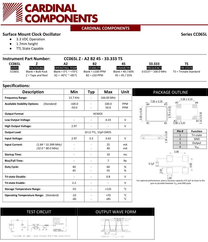 更多>>美國Cardinal晶振,CC065L有源晶振,CC065LZ-A2B245-24.000TS晶振