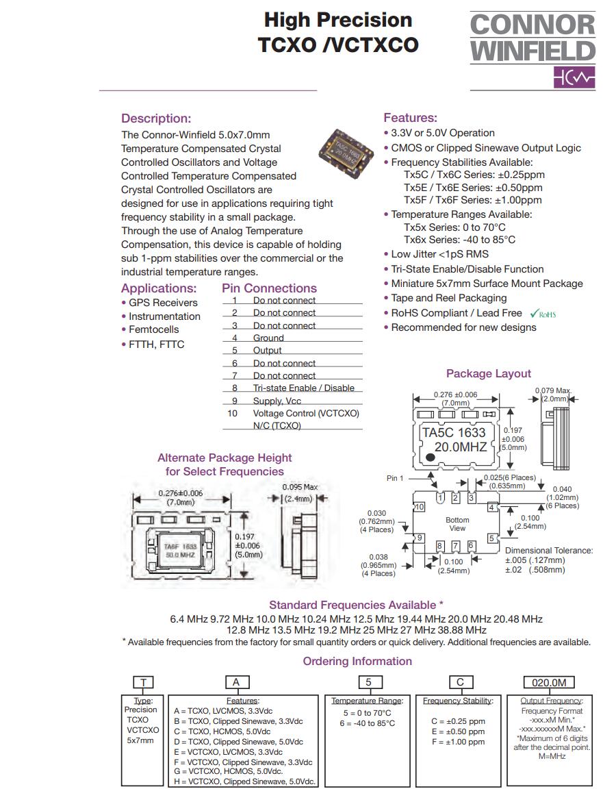 Connorwinfield康納·溫菲爾德晶振集團環(huán)?;纠砟睿?strong>康納溫菲爾德晶振,TX180晶振,7050溫補晶振