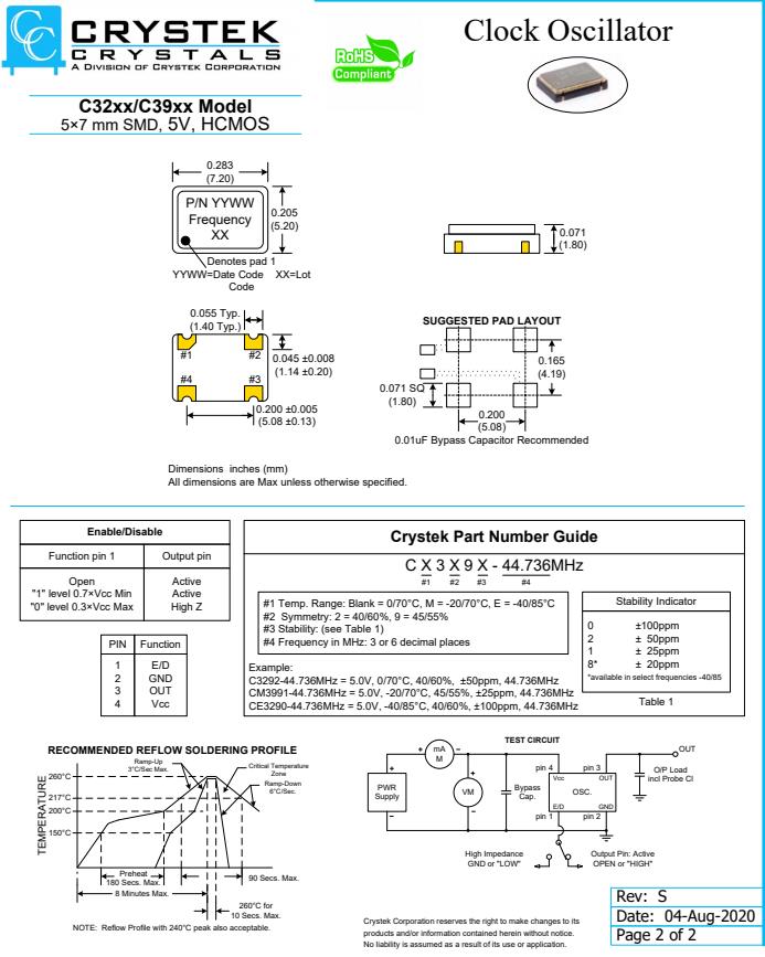 更多>>Crystek晶振,C32xx時(shí)鐘晶體振蕩器,C3292-26.000MHz有源晶體