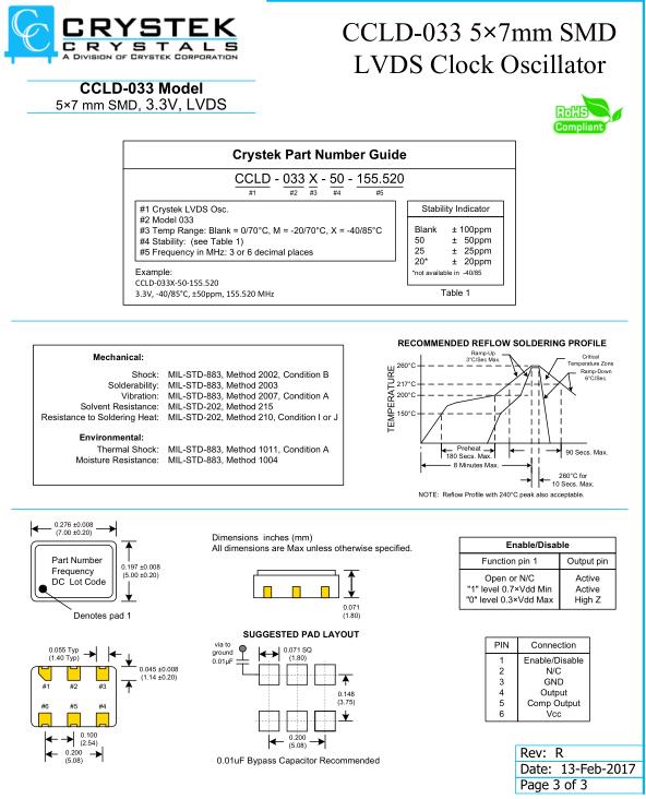 更多>>CrystekCrystal,CCLD-033數(shù)字視頻振蕩器,CCLD-033X-50‐150.000晶振