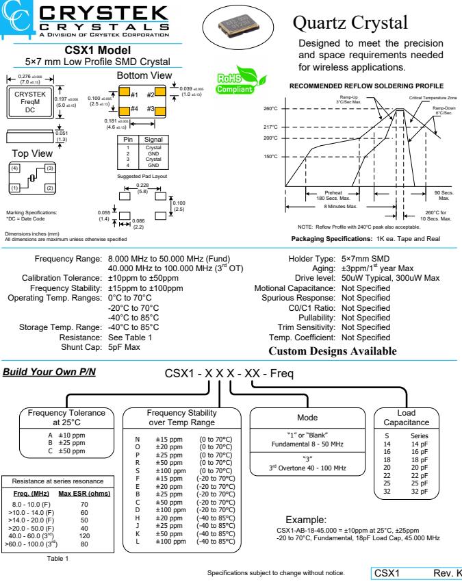 | Shunt Cap:5pF Max | Pullability:Not Specified |
