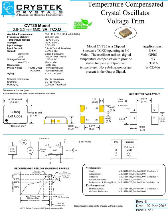 更多>>CVT25溫補(bǔ)晶振,Crystek有源晶振,CVT25-16.000振蕩器