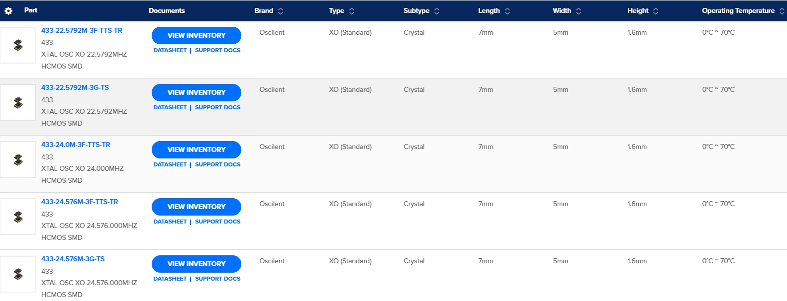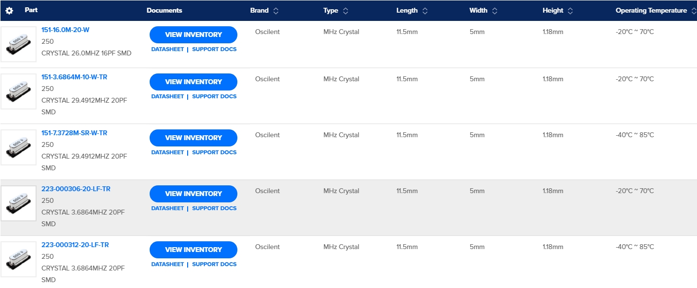 美國(guó)Oscilent晶振型號(hào)大全