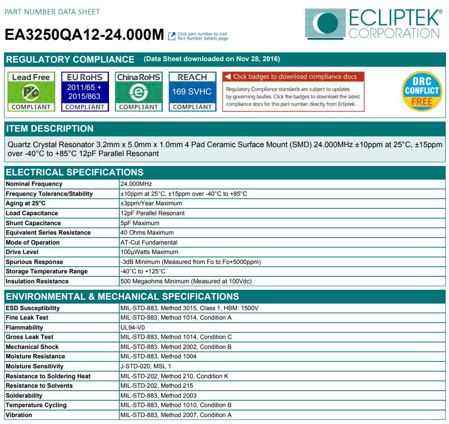 Ecliptek日蝕晶振公司成立于1987年,是一家石英晶振晶體,貼片晶振頻率元件控制市場上公認(rèn)的領(lǐng)導(dǎo)者.日蝕晶振公司擁有先進(jìn)的產(chǎn)品和領(lǐng)先的技術(shù)使我們能夠為客戶提供最好的石英晶體,貼片晶振,石英水晶和有源晶振,石英晶體振蕩器,貼片振蕩器產(chǎn)品.日蝕晶振,EA3250QA12-24.000M晶振,3225小體積晶振