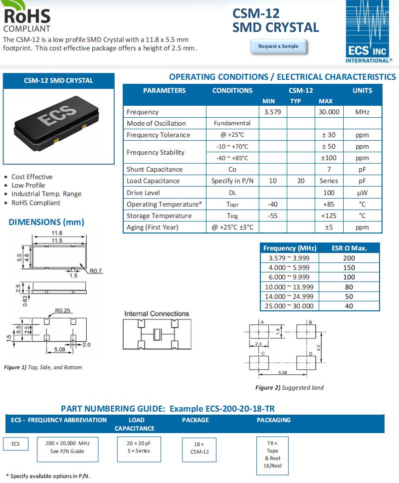 | ECS-50-18-18-TR | ECS晶振 | CSM-12 | 5MHz | -40°C ~ 85°C |