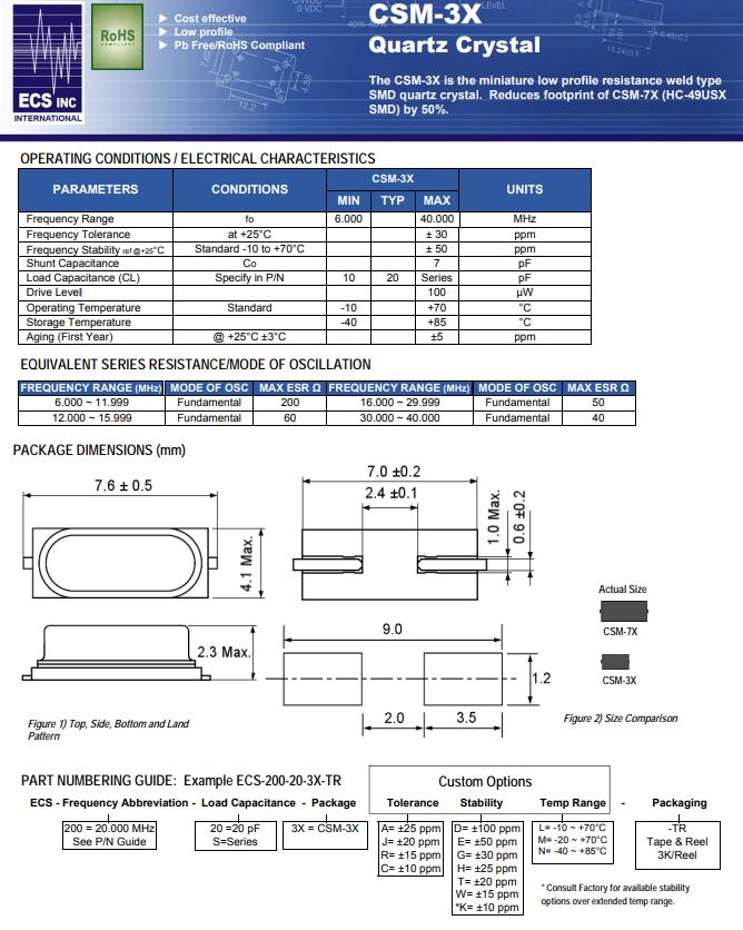 | ECS-400-20-3X-EN-TR | CSM-3X | MHz Crystal | 40MHz | ±50ppm | ±30ppm | 20pF |