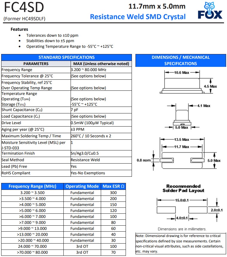 | FC4SDCBMF4.0-T1 | Fox晶振 | FC4SD | 4 MHz | ±50ppm |