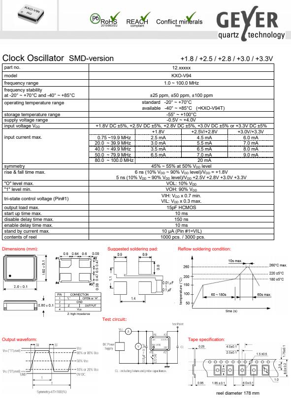 格耶德國(guó)晶振,KXO-V94低抖動(dòng)晶振,SMD振蕩器, GEYER晶振作為一個(gè)可靠的,成功的合作伙伴,我們非常重視在開(kāi)發(fā)階段與客戶(hù)的密切合作。這使我們能夠確保我們能夠?yàn)槟峁┠胍暮托枰摹?