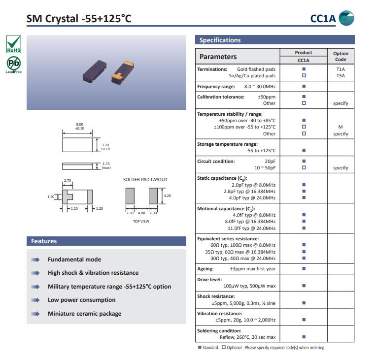 更多>>高利奇晶振,CC1A晶振,8038二腳晶振