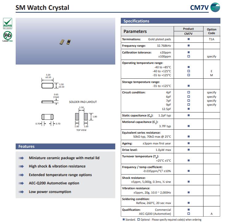 高利奇晶振,CM7V晶振,32.768K系列晶振