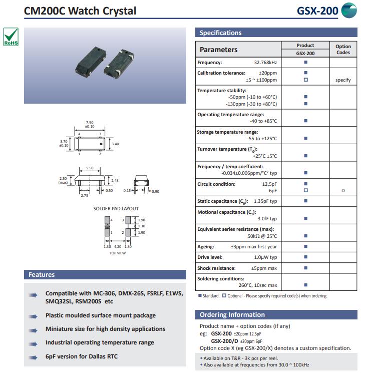 高利奇晶振,GSX-200晶振,8038四腳晶振小體積SMD時鐘晶體諧振器,是貼片音叉晶體,千赫頻率元件,應用于時鐘模塊,智能手機,全球定位系統(tǒng),因產(chǎn)品本身體積小,SMD編帶型,可應用于高性能自動貼片焊接,被廣泛應用到各種小巧的便攜式消費電子數(shù)碼時間產(chǎn)品,環(huán)保性能符合ROHS/無鉛標準.