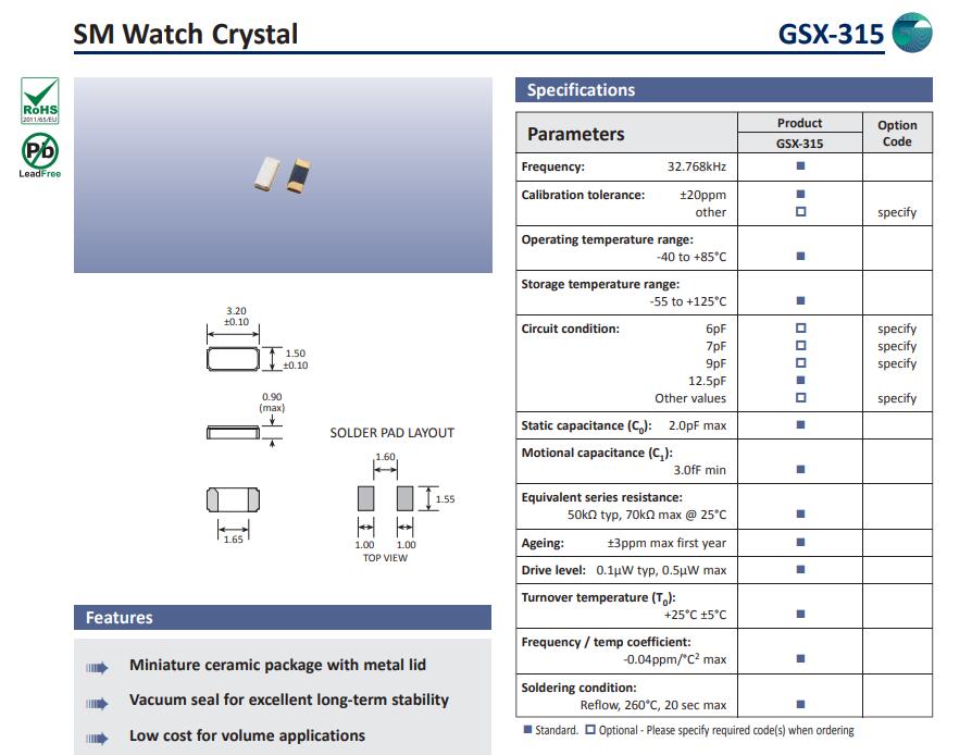 Golledge晶振,GSX-315晶振,3215無(wú)源晶振小體積SMD時(shí)鐘晶體諧振器,是貼片音叉晶體,千赫頻率元件,應(yīng)用于時(shí)鐘模塊,智能手機(jī),全球定位系統(tǒng),因產(chǎn)品本身體積小,SMD編帶型,可應(yīng)用于高性能自動(dòng)貼片焊接,被廣泛應(yīng)用到各種小巧的便攜式消費(fèi)電子數(shù)碼時(shí)間產(chǎn)品,環(huán)保性能符合ROHS/無(wú)鉛標(biāo)準(zhǔn).