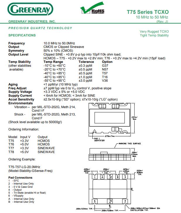 更多>>進(jìn)口GREENRAY晶振,T75型號(hào)晶振,7050溫補(bǔ)晶振