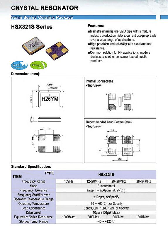 加高晶振,HSX321S晶振,3225小體積晶振3225mm體積非常小的SMDcrystal器件,是民用小型無線數(shù)碼產(chǎn)品的最佳選擇,小體積的晶振被廣泛應(yīng)用到,手機(jī)藍(lán)牙,GPS定位系統(tǒng),無線通訊集,高精度和高頻率的穩(wěn)定性能,非常好的減少電磁干擾的影響,是民用無線數(shù)碼產(chǎn)品最好的選擇,符合RoHS/無鉛.