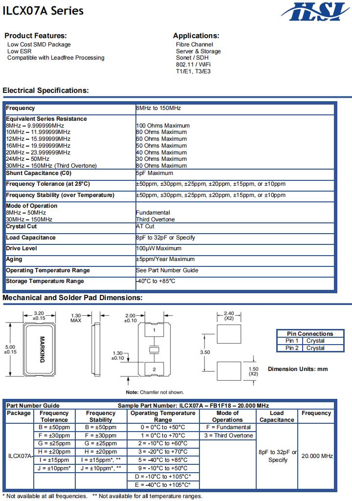 | ILCX07-FF5F12.5-8.000MHz | ILSI | ILCX07 | -40°C ~ 85°C | 8 MHz | ±30ppm | 12 pF |