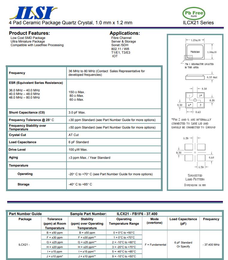 | ILCX07-FB3F13-16.000MHz | ILSI | ILCX07 | -20°C ~ 70°C | 16 MHz | ±30ppm | 13 pF |