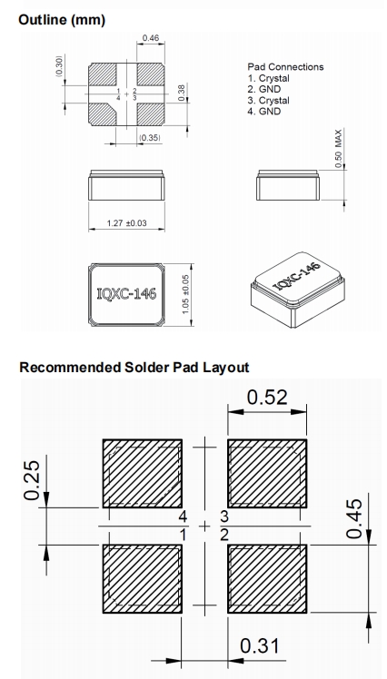 英國IQD晶振,IQXC-146石英晶體,6G無線網(wǎng)絡晶振尺寸圖