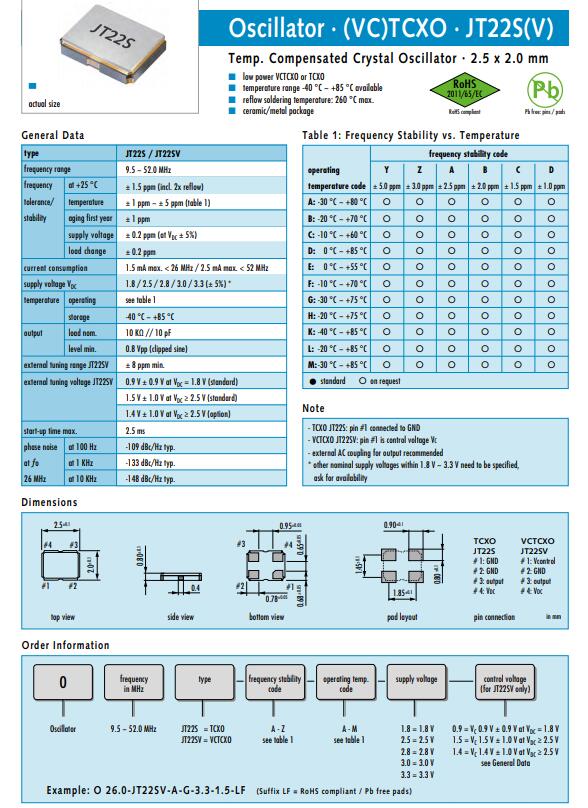 | 型號(hào) | JT22S/JT22SV晶振 (TCXO) | |