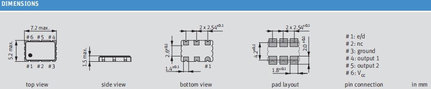 Jauch晶振,O 155.520-JOD75-B-3.3-T3-LF,6G光纖通道晶振尺寸圖