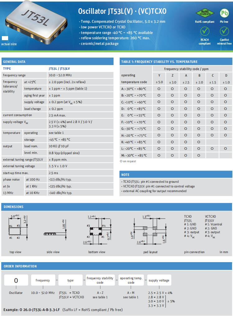 Jauch品牌,O 28.80-JT53L-B-M-2.8-LF,6G無(wú)線通信晶振規(guī)格表