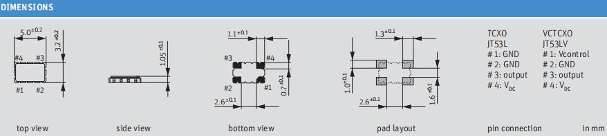 Jauch品牌,O 28.80-JT53L-B-M-2.8-LF,6G無(wú)線通信晶振尺寸圖