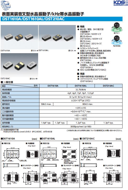 | KDS晶振 | 1TJH090DR1A0003 | DST1610A | 1610 | 32.768KHZ | ||