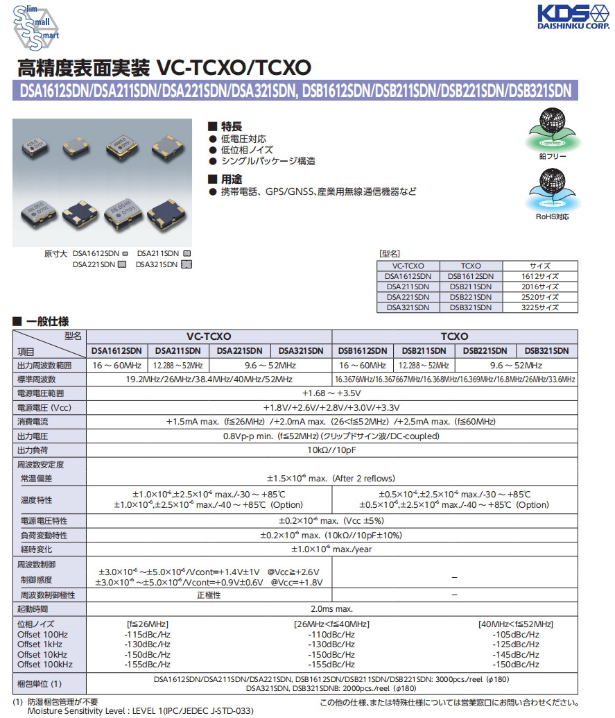 日本KDS晶振,1XXD16367MAA,2016mm溫補(bǔ)晶振規(guī)格表
