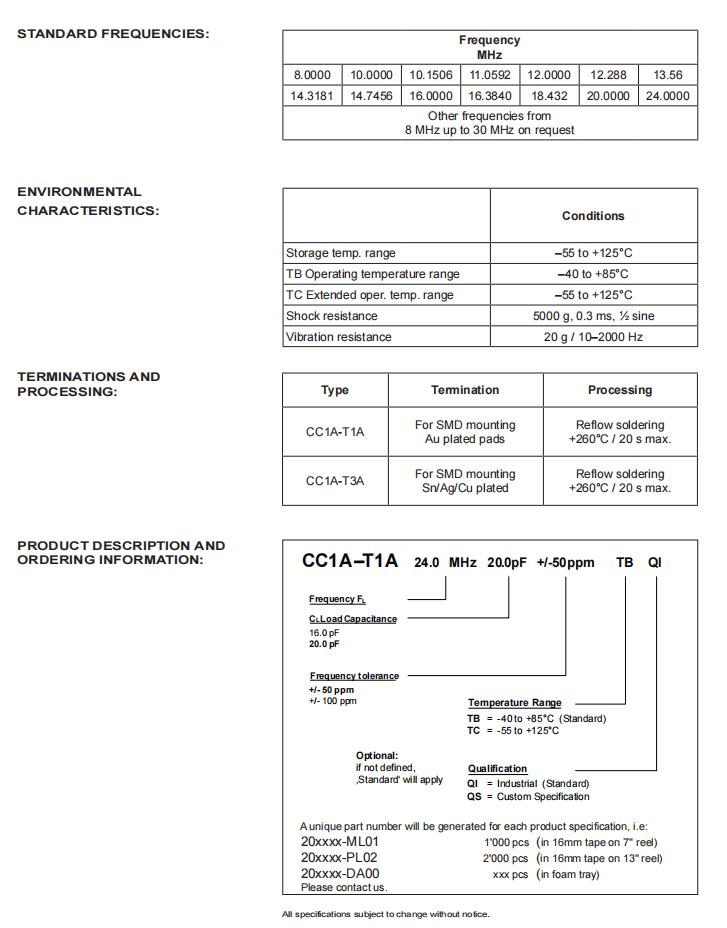 Micro進(jìn)口晶振|CC1A-T1A-18.000MHz-20.0pF-100ppm-TA-QI|6G無(wú)線通信晶振規(guī)格表