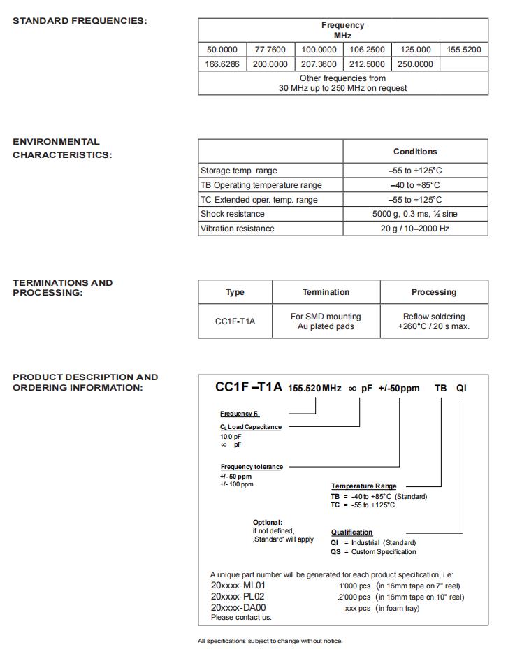 CC1F-T1A-106.250MHz-10.0pF-50ppm-TB-QI|耐高溫晶振|6G通信晶振規(guī)格表