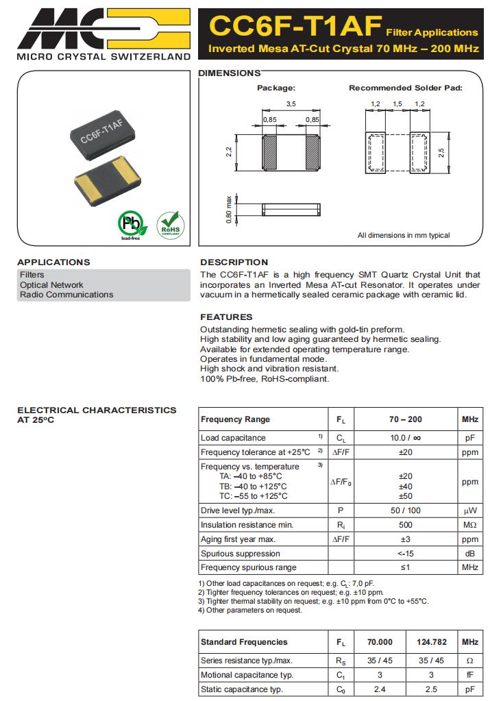 CC6F-T1AF-80.000MHz-10.0pF-20ppm-TA-QI,6G路由器晶振,高穩(wěn)定性晶振,瑞士微晶晶振,CC6F-T1AF無源晶振,CC6F-T1AF-80.000MHz-10.0pF-20ppm-TA-QI晶振,石英晶體諧振器,3522mm晶振,進口SMD晶振,頻率80MHz,負載10pf,頻率穩(wěn)定性20ppm,工作溫度-40~85°C,低老化晶振,高穩(wěn)定性晶振,6G路由器晶振,濾光器晶振,光學網(wǎng)絡晶振,無線電通信晶振.