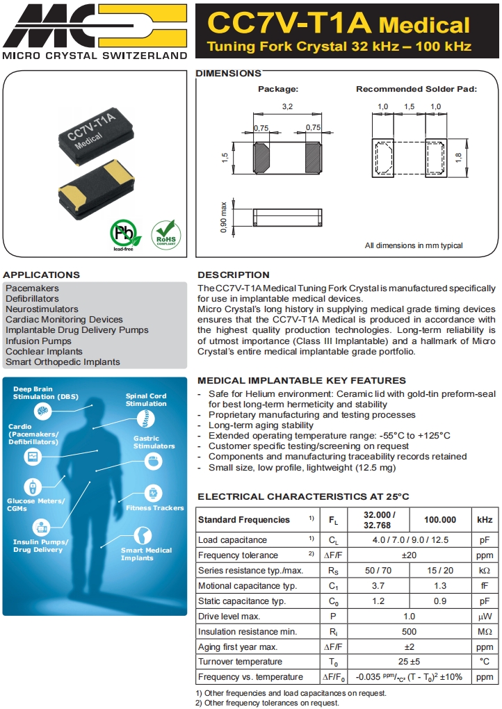 | CM7V-T1A-32.768kHz-12.5pF-100PPM-TA-QC | Micro Crystal | 晶體 32.768 kHz 12.5 pF +/-100 PPM -40/+85C |