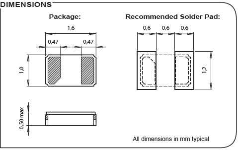 CM9V-T1A0.332.768kHz12.5pF±20ppmTAQC,1610mm超小型晶振,6G模塊晶振尺寸圖