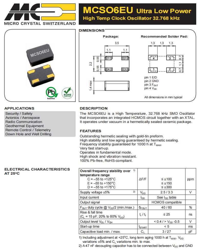 MCSO6EUV-E-32.768kHz-E/D-T3|32.768KHz有源晶振|6G發(fā)射器晶振,Micro晶振,MCSO6EU進(jìn)口晶振,MCSO6EUV-E-32.768kHz-E/D-T3晶振,3522mm晶振,有源晶振,頻率32.768KHz,電壓3.3V,頻率穩(wěn)定性100ppm,工作溫度-55~150°C,耐高溫晶振,低老化晶振,6G發(fā)射器晶振,無線電通信晶振,安保應(yīng)用晶振,地?zé)嵩O(shè)備晶振,井下和鉆井應(yīng)用晶振.