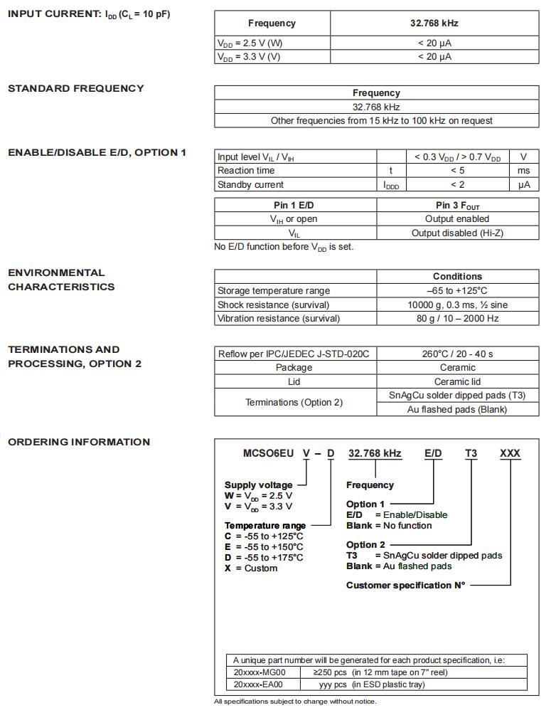 MCSO6EUV-E-32.768kHz-E/D-T3|32.768KHz有源晶振|6G發(fā)射器晶振規(guī)格表