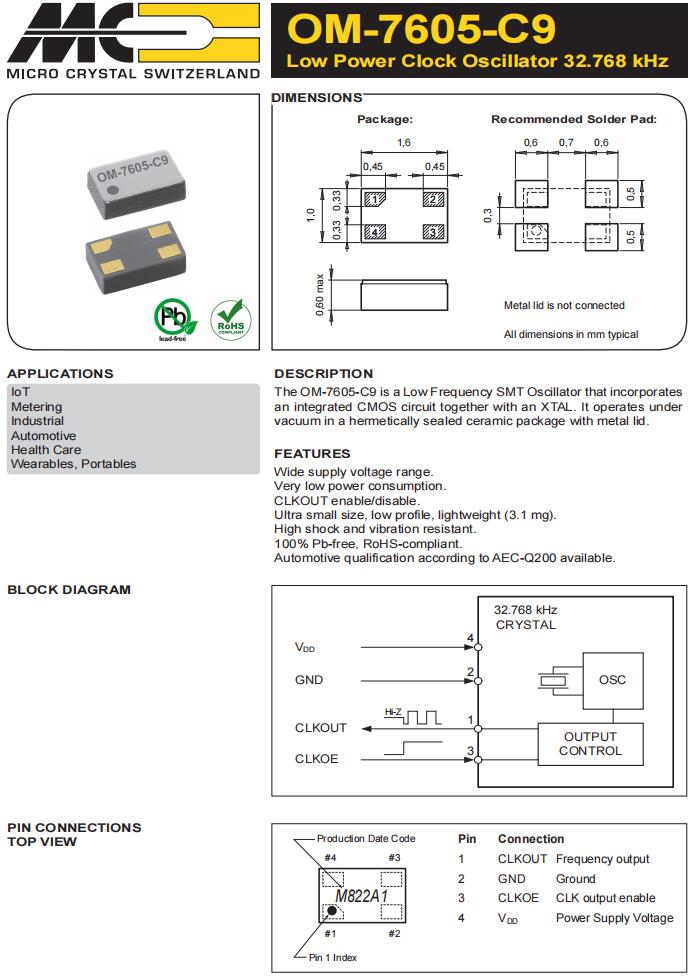 | CC4V-T1A-32.768k-9pF-20PPM-TC-QA | Micro 晶振 | 晶體 32.768 kHz 9.0 pF +/-20 PPM AEC-Q200 | Crystals |