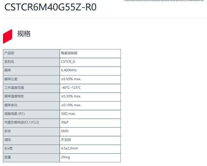 更多>>進(jìn)口MURATA晶振,CSTCR-G晶振,CSTCR6M40G55Z-R0晶振