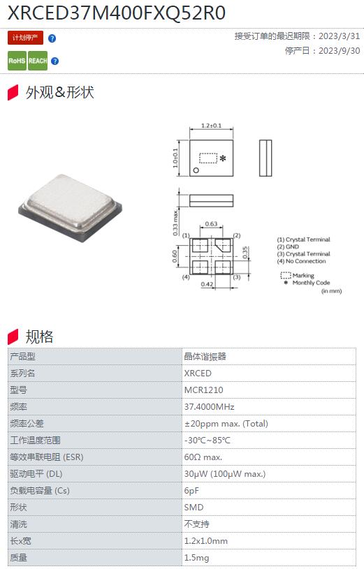 MEMS硅晶振與石英晶振區(qū)別:進(jìn)口MURATA晶振,XRCED37M400FXQ52R0晶振,1210四腳諧振器
