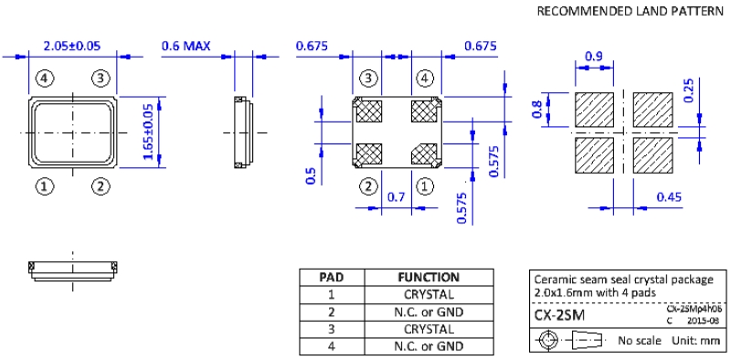 NKG Crystal|S2SM20.000F20M23-EXT|2016mm石英晶振尺寸圖