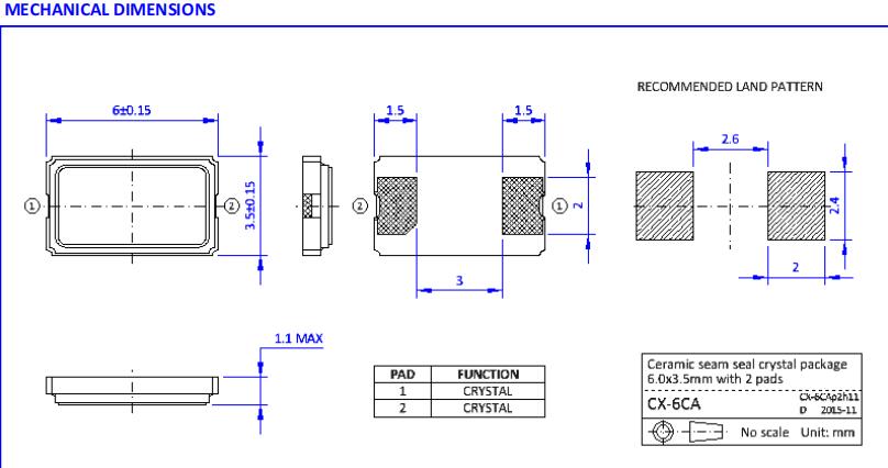 | Stability over operating temp. | TC | ±15ppm | Depending on operating temperature range, other options available |