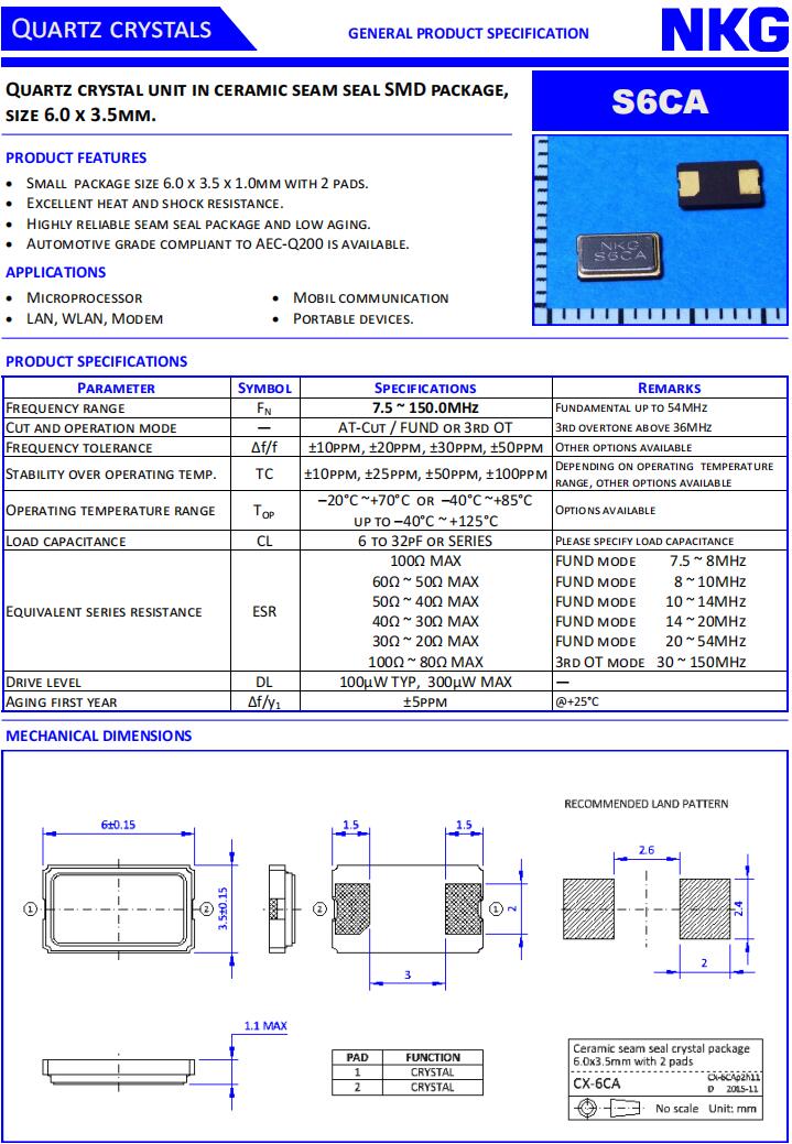 NKG Crystal|S6CA19.800F18M1Y-EXT|車規(guī)級(jí)晶振規(guī)格表