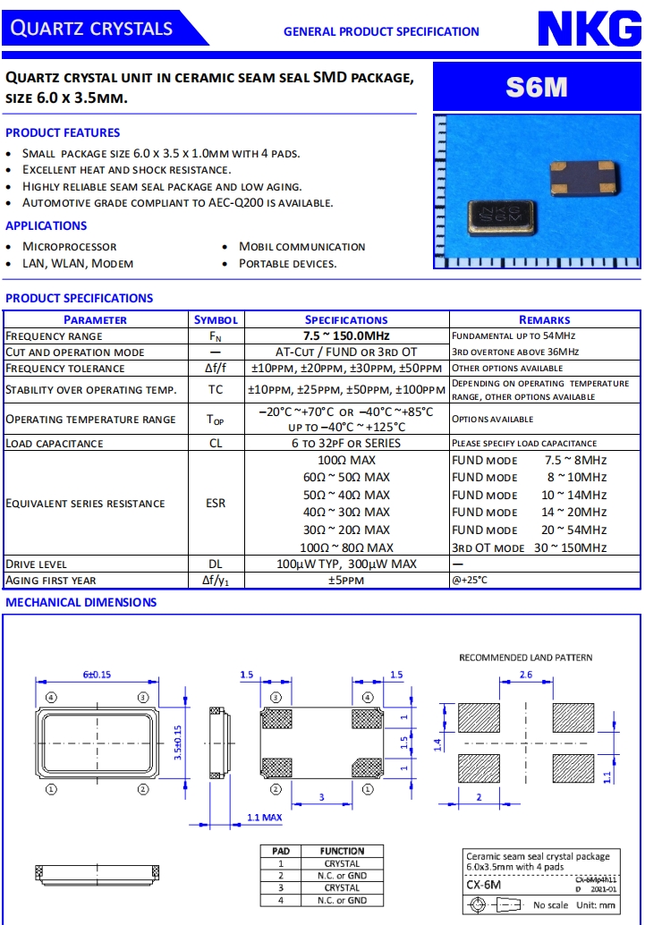 NKG晶體|S6M19.200F18M23-EXT|6035mm晶振特點(diǎn)