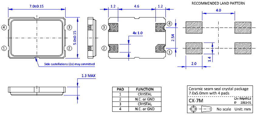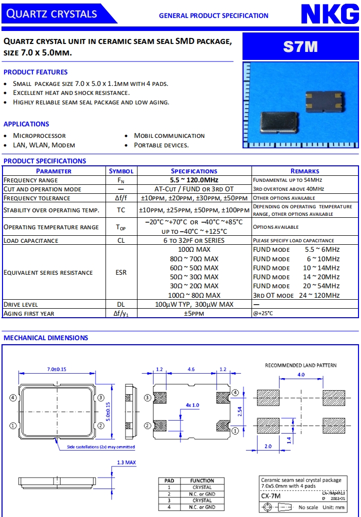 NKG進(jìn)口晶振|S7M26.000F16E1Y-EXT|7050抗震晶振規(guī)格表