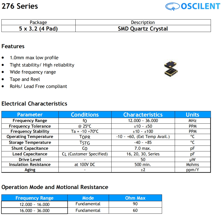 奧斯康利晶振,276-18.432M-16-05LW-TR,6G以太網(wǎng)晶振規(guī)格表