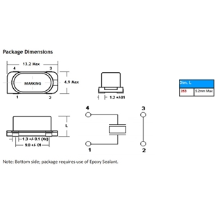 美國Oscilent晶振,253-25.0M-18-15GW-TR,6G低成本晶振尺寸圖