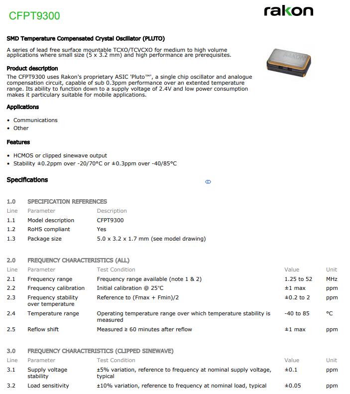 | 型號(hào) | CFPT9300 (TCXO) | |