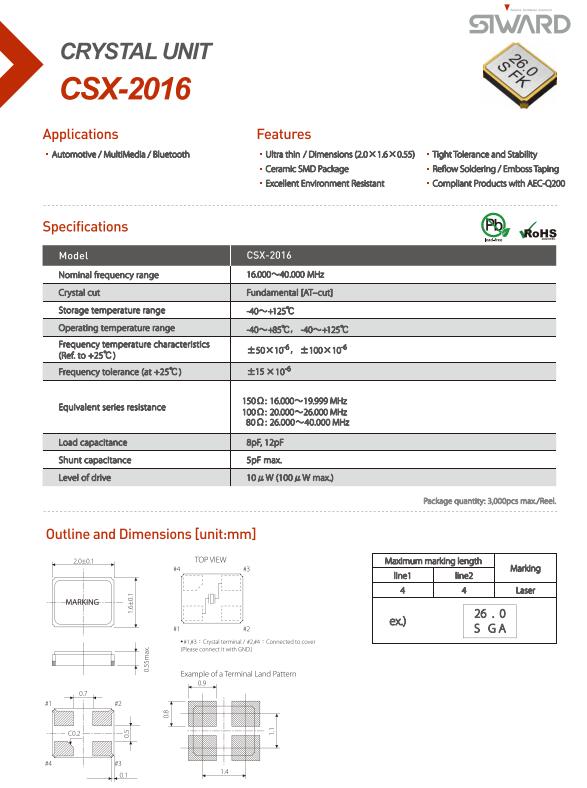 更多>>臺灣希華晶振,CSX-2016晶振,2016小體積晶振