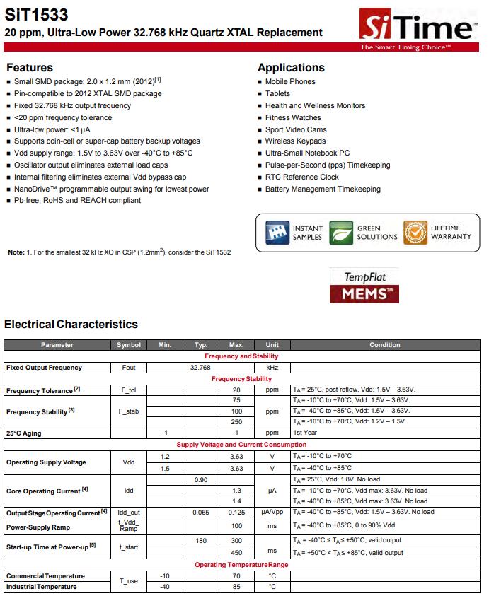 采用對環(huán)境盡可能健康的生產(chǎn)工藝,SiTime晶振,SiT1533晶振,2012有源晶振