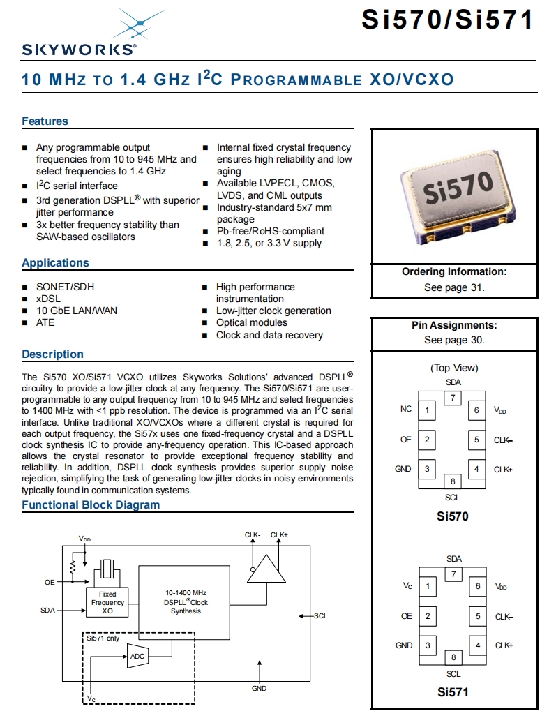 | 571AEA000928DG | Skyworks Solutions Inc. | Si571 | 1 GHz | LVPECL | 2.97V ~ 3.63V | ±20ppm |