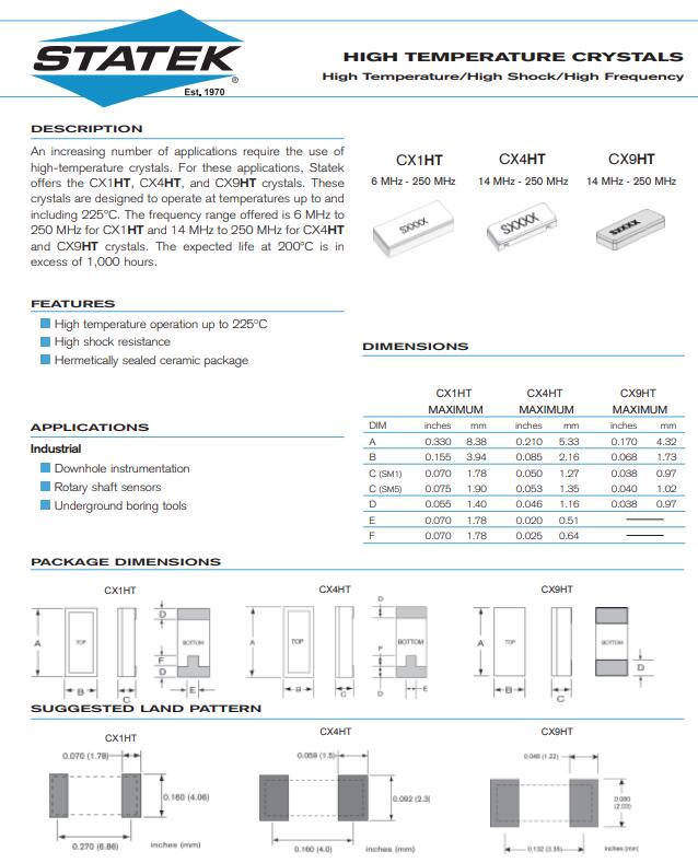 更多>>美國STATEK晶振,CX1HT晶振,8038無源晶振